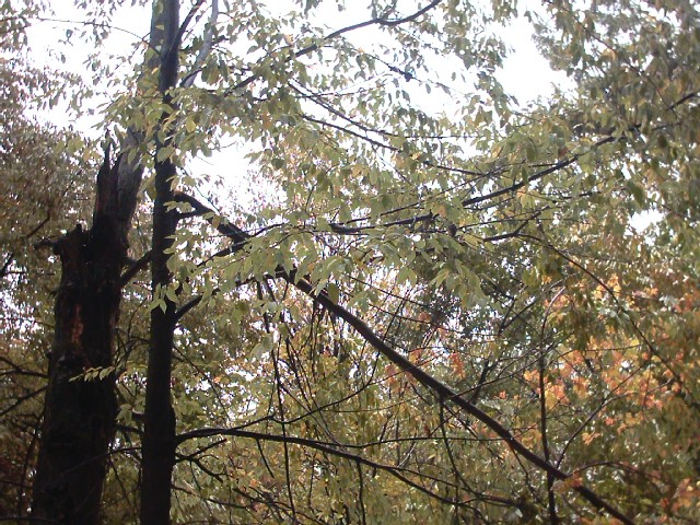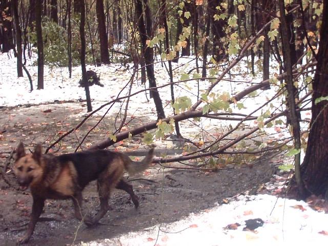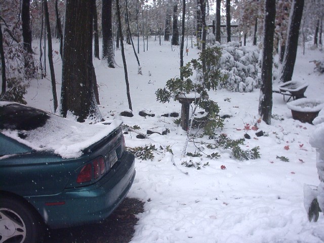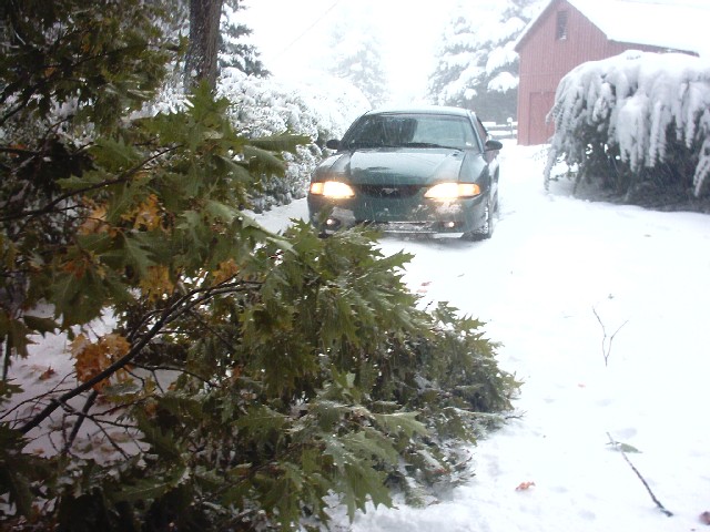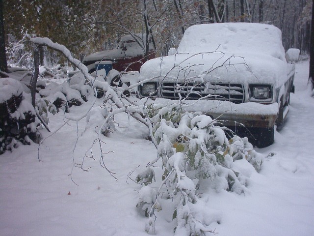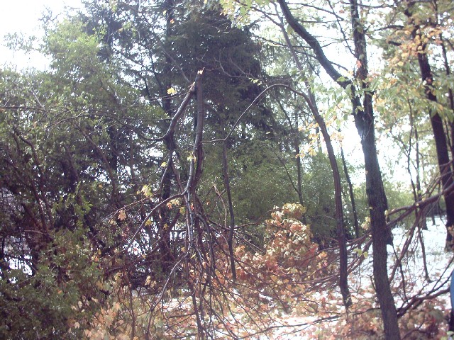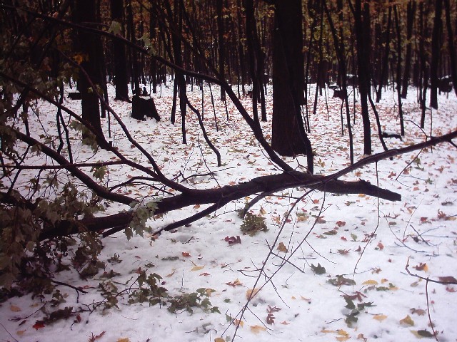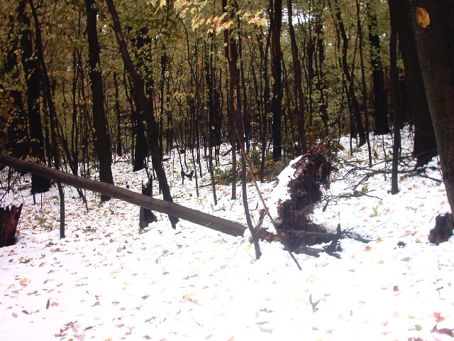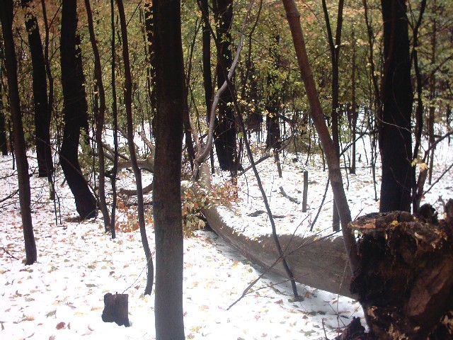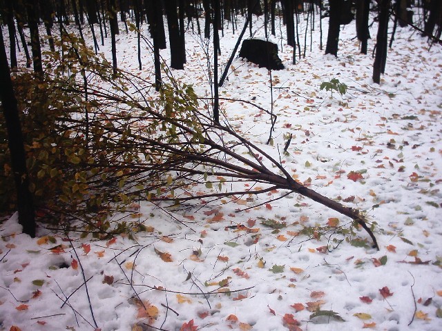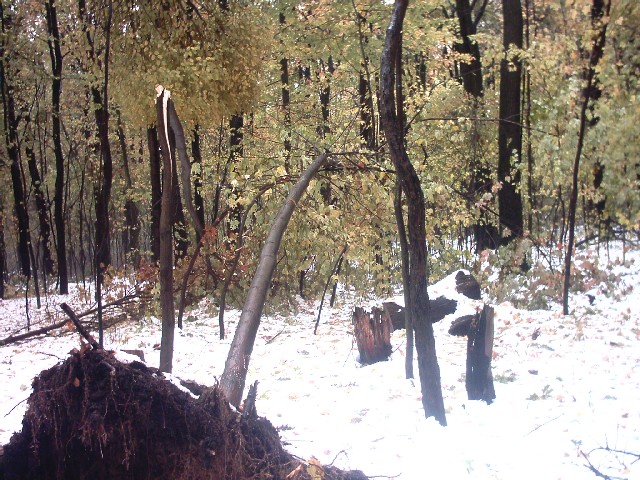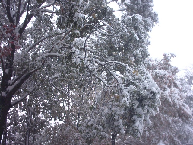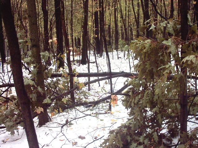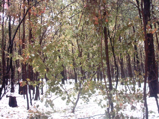 trees still had leaves on them which collected the heavy wet snow as it fell. The weight of snow on the