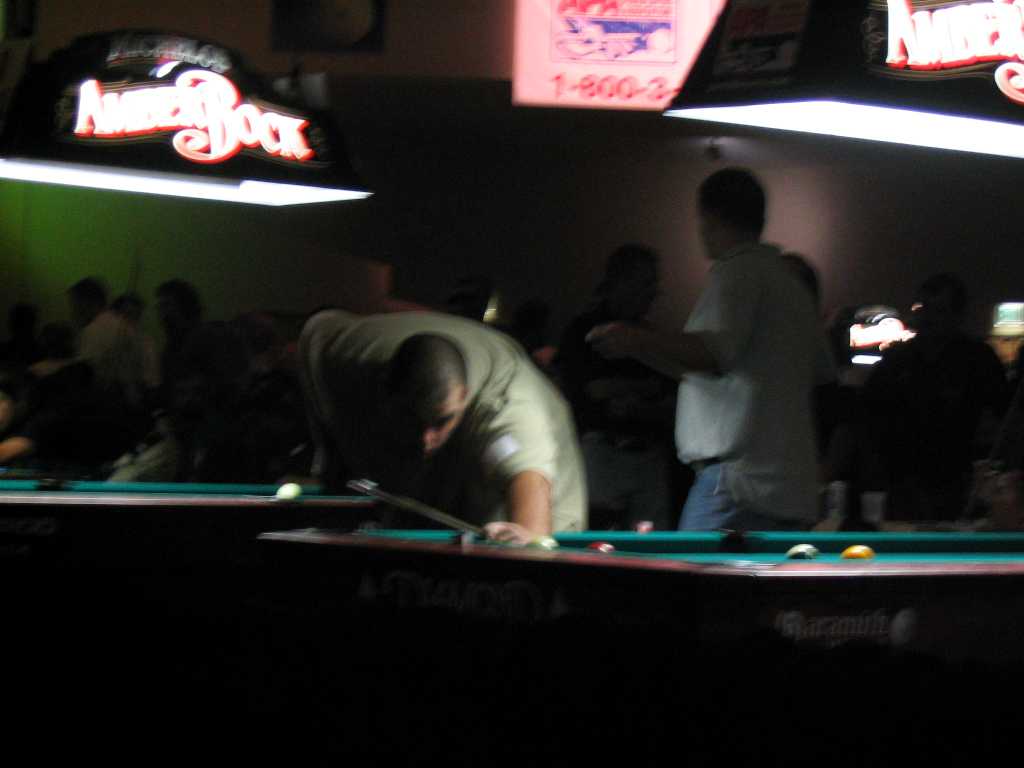 It was a small place with an 8ft Brunswick table with with blue Simonis tournament cloth. It was usually